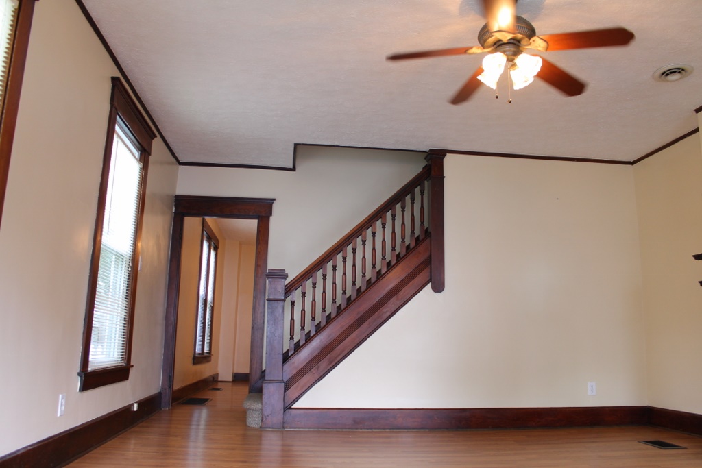 Completely repainted with new wood laminate flooring recently installed. This wonderful townhouse sports spacious room sizes, original woodwork, ceiling fans in all rooms and a fully equipped kitchen with stove, dishwasher and fridge included. Wonderful front porch and private fenced yard in back.